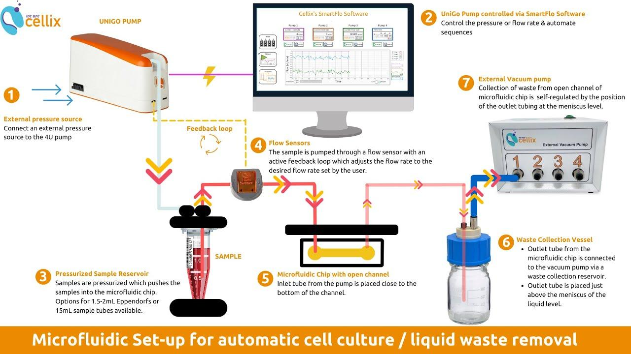 - 微流体泵将培养基输送到您的细胞。我们的 4U 四通道微流体泵非常适合此类实验。这款精密压力泵具有稳定而准确的流速,可独立控制 4 个不同的通道,控制压力和流量。您可以编程您的流量曲线并有效管理所有泵功能。