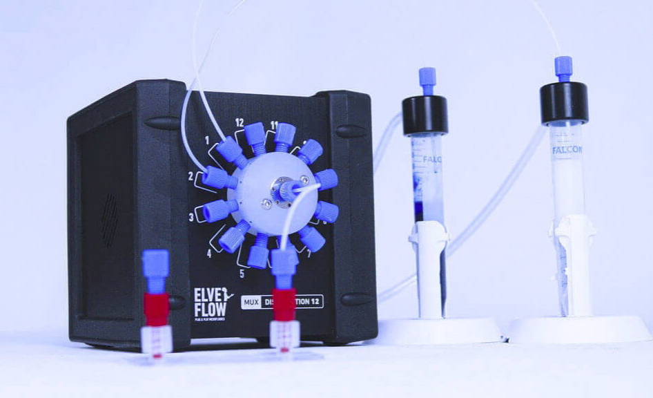 方案优势:点成Elveflow 顺序注射套装以OB1 Mk4 + 压力控制器(核心控制单元)与MUX Distribution 12/1 旋转阀(溶液切换单元)为核心,搭配流量传感器、歧管器、ESI 软件等组件,从根本上解决传统方案的痛点。